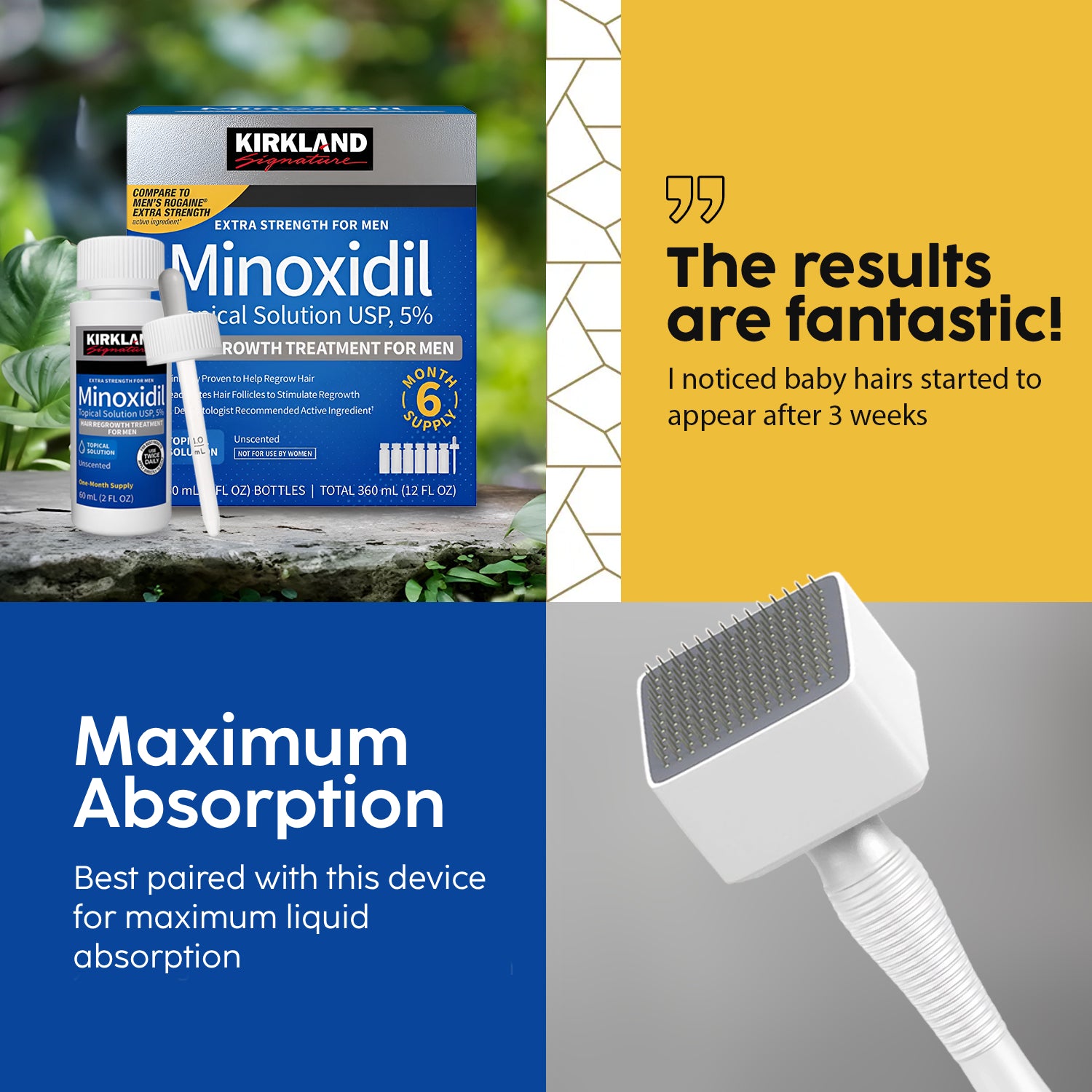 Minoxidil topical solution 5% is a colorless liquid medication containing 5% minoxidil for use only on the scalp to help regrow hair in men.